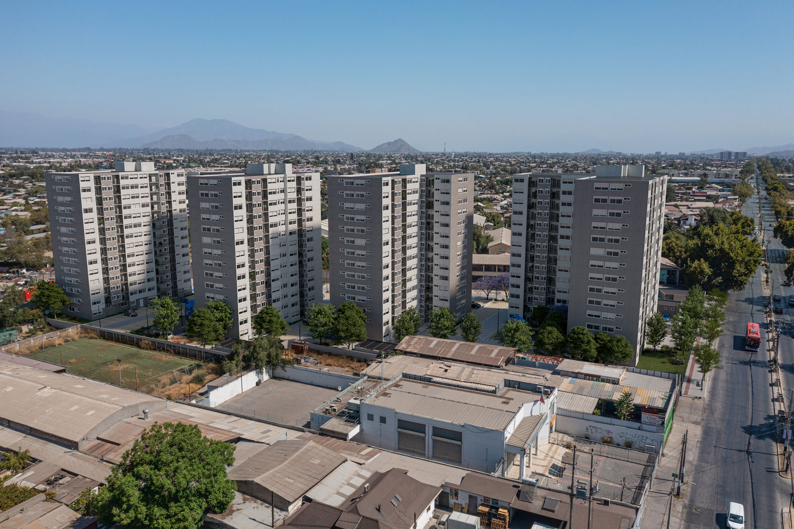 Condominio Gran Avenida está compuesto por 4 Edificios, 2 de 14 pisos y 2 de 13 pisos, conectados por una calle principal con acceso directo a Gran Avenida. Cuenta con equipamientos de seguridad 24/7 y múltiples espacios comunes.